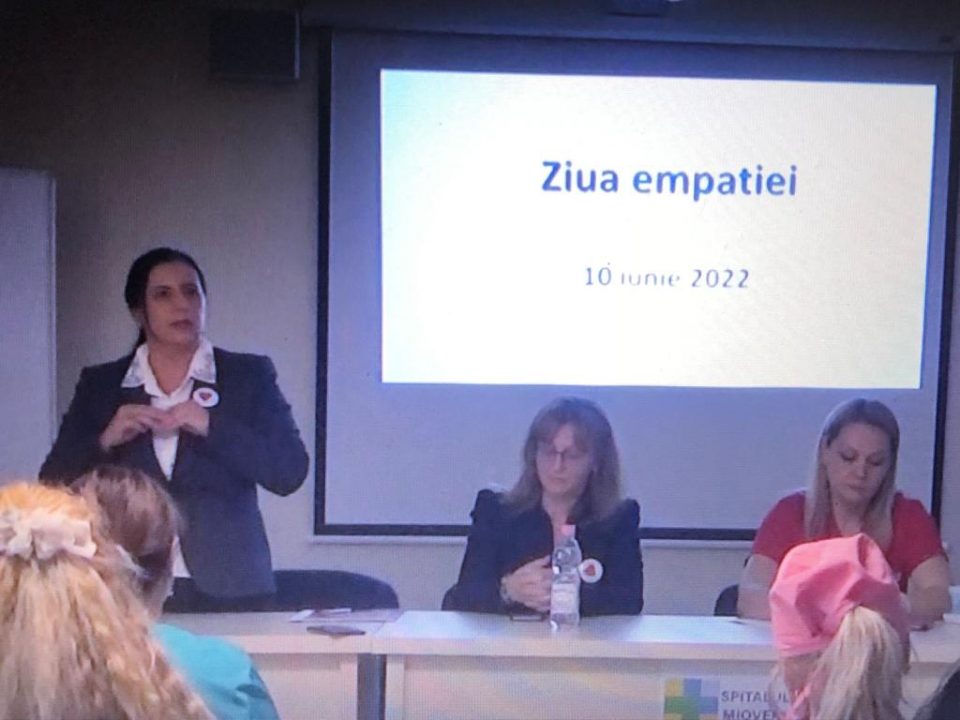 Manifestarea ,,Îngrijim cu empatie” s-a desfășurat în sala de ședințe din cadrul Spitalului Orășenesc Mioveni, chiar de Ziua Empatiei, pe 10 iunie, în prezența asistenților medicali din această unitate sanitară.